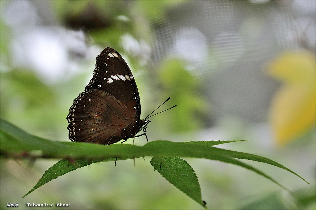 琉球紫蛺蝶(幻紫蛺蝶)躲在網室的一角,今天十分焦燥