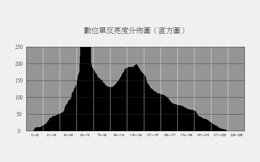 縱座標(y)色階數量值:0代表「全無」(下),255代表「最多」(上)